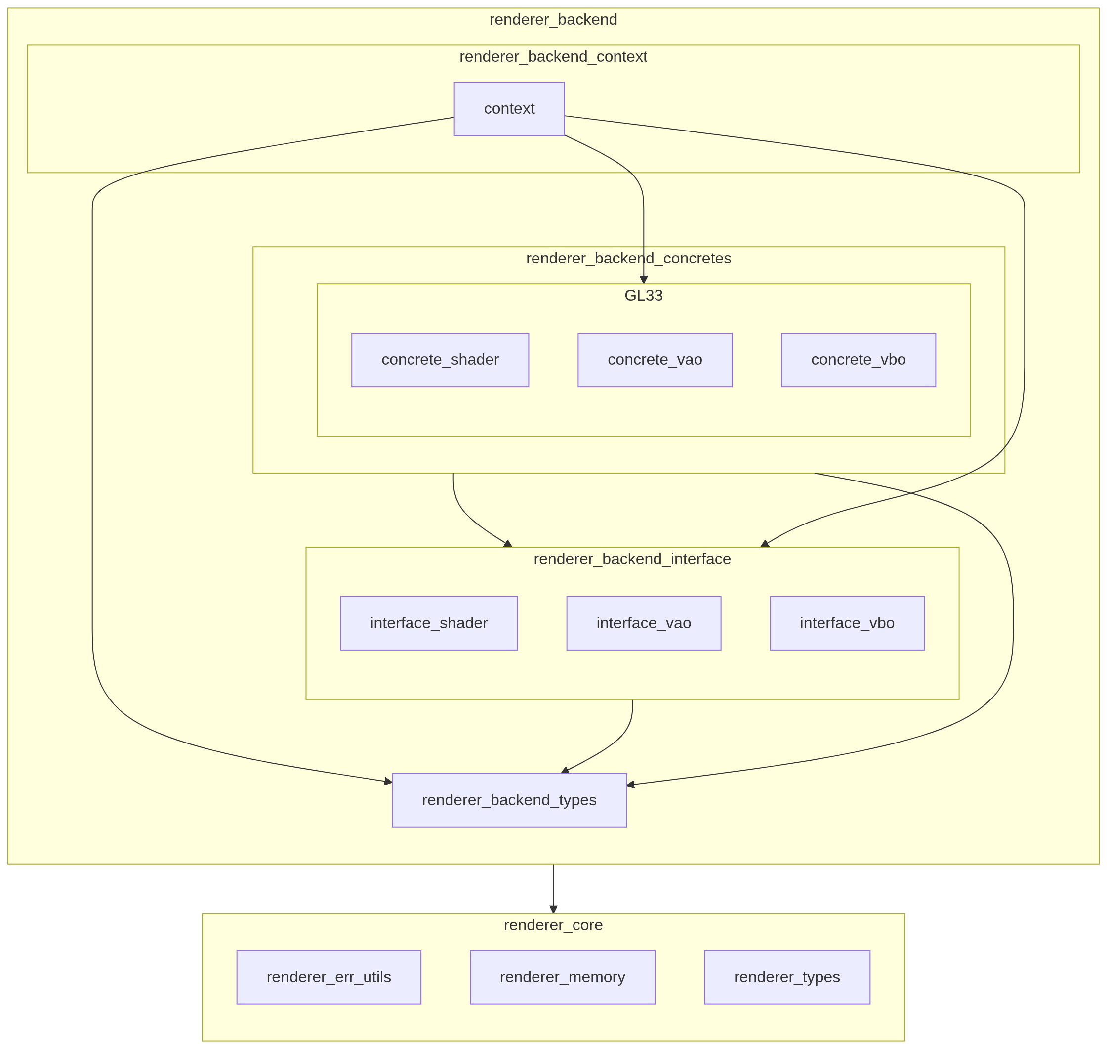 | Interface | platform_interface | Contextにプラットフォームごとに差し替え可能な仮想関数テーブル(プラットフォーム機能を抽象化したAPIを保持)を提供する |