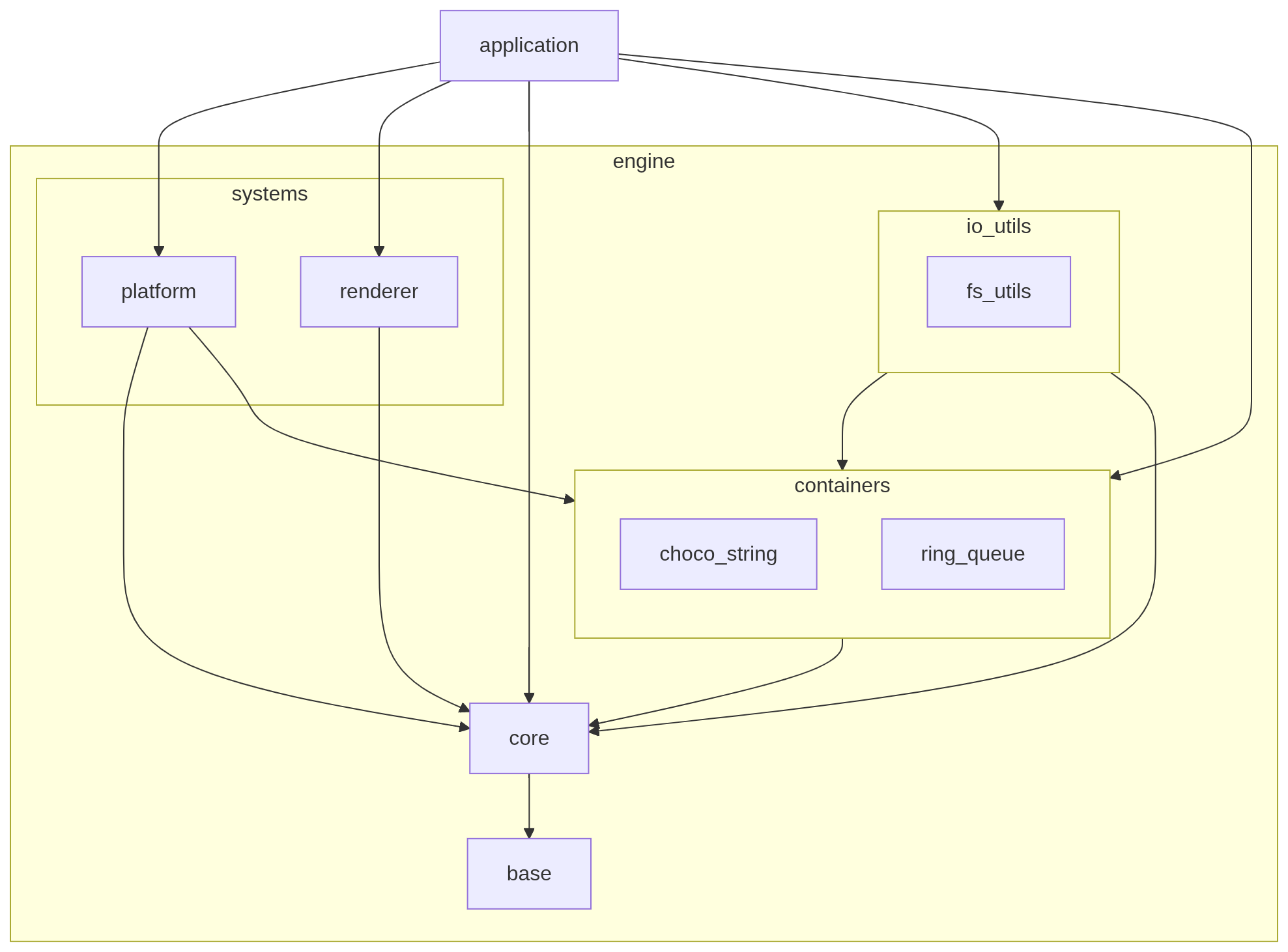 This document describes the high-level layering and module dependencies of GL CHOCO ENGINE (GLCE).